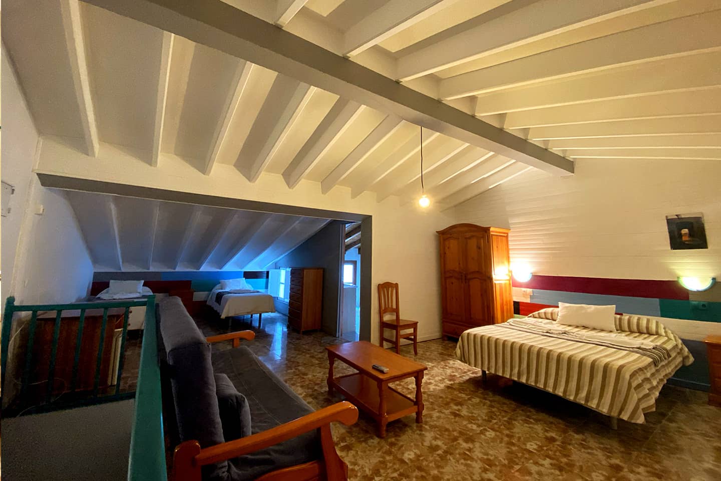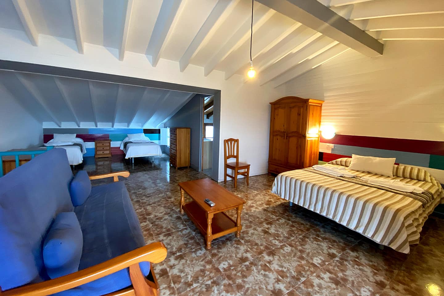 - Tipo de cama: 1 cama de matrimonio, 2 camas individuales.